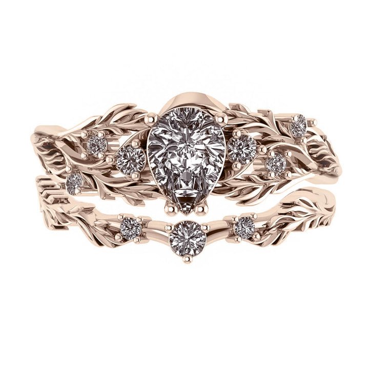 Japanese Maple | bridal ring set for pear cut gemstone 7x5 mm - Eden Garden Jewelry™