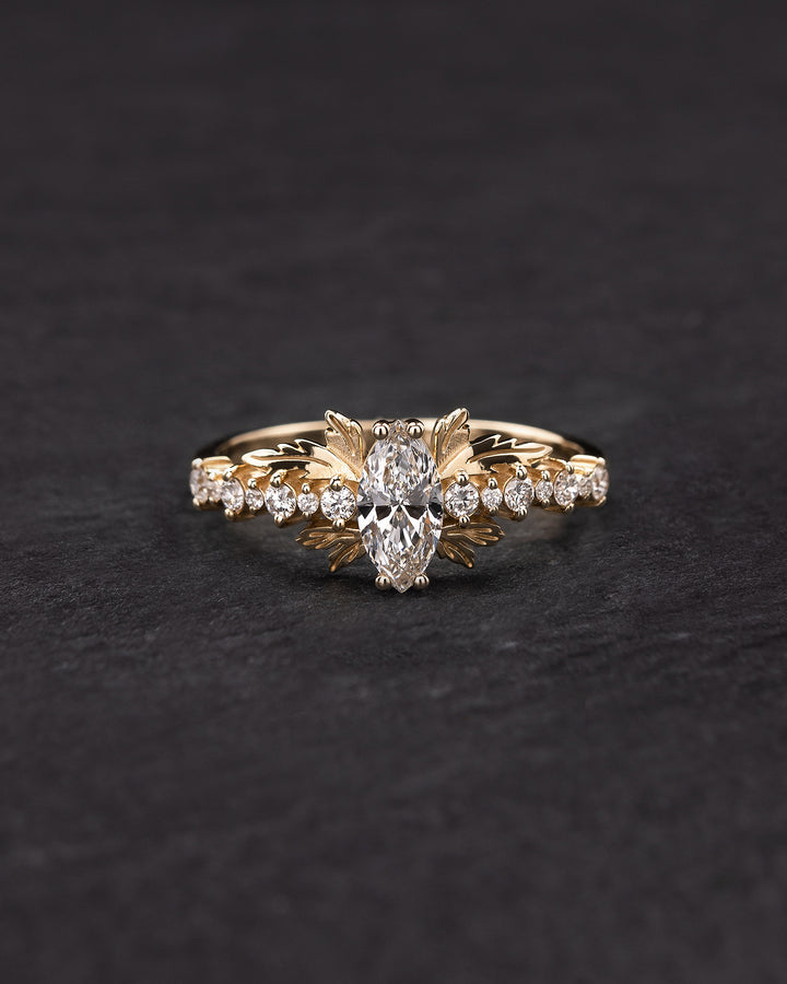 READY TO SHIP: Verbena ring in 14K yellow gold, lab-grown diamond, marquise cut 8x4 mm, AVAILABLE RING SIZE: 5.5 - 8.5 US - Eden Garden Jewelry™