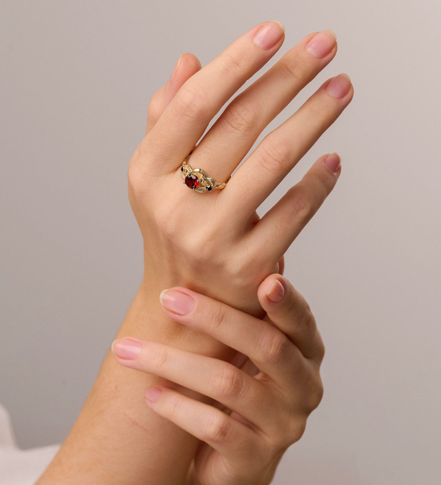 Round cut gemstone rings, nature inspired engagement rings for woman