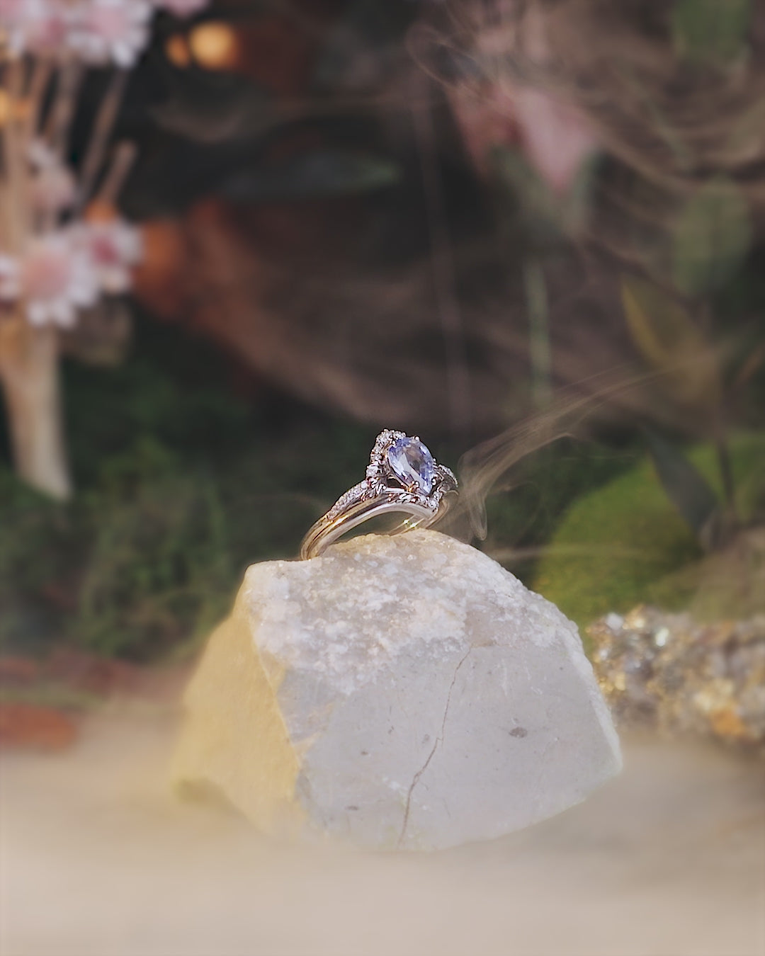 Light blue sapphire and diamonds engagement ring / Amelia - Eden Garden Jewelry™