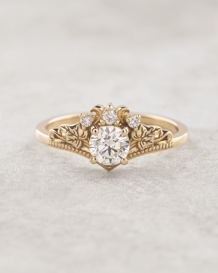 Round lab grown diamond engagement ring, nature inspired proposal ring
