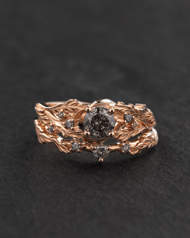 Salt & pepper diamond bridal set for a forest nymph / Japanese Maple