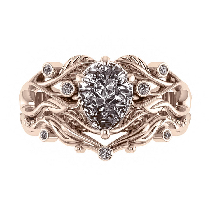 Callisto | 8x6 pear gemstone bridal ring set - Eden Garden Jewelry™