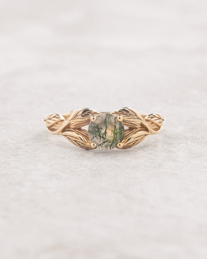 Round moss agate leaf engagement ring / Clematis