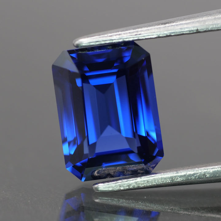 Sapphire | Royal Blue color, lab-grown, emerald-cut, 8x6mm, 2.2ct