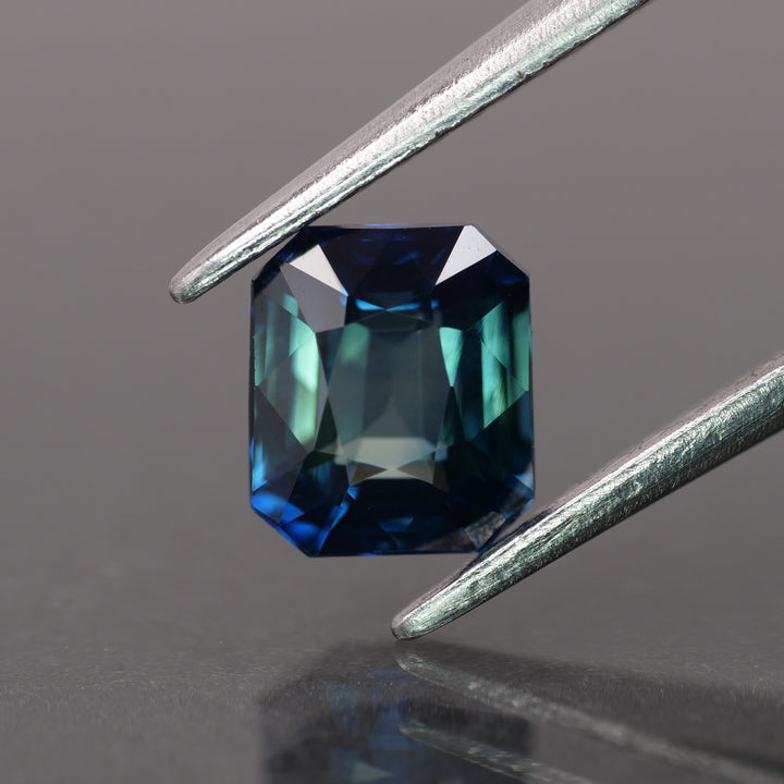 Sapphire | natural, bi-color: green, blue, emerald-cut, 6x5mm, 1.2ct, Australia