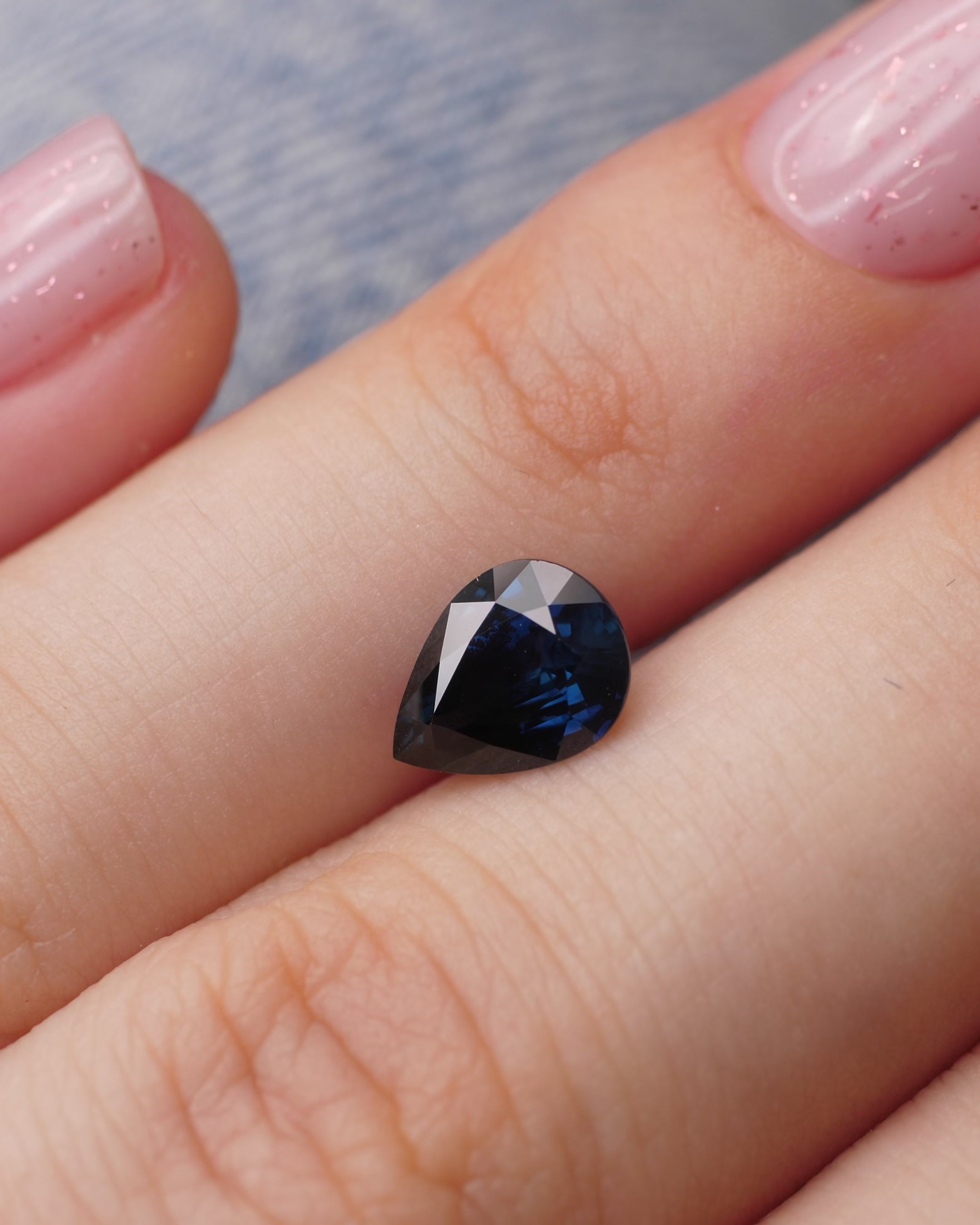 Sapphire | natural, dark blue color, pear-cut, *8x6mm, 1.6ct