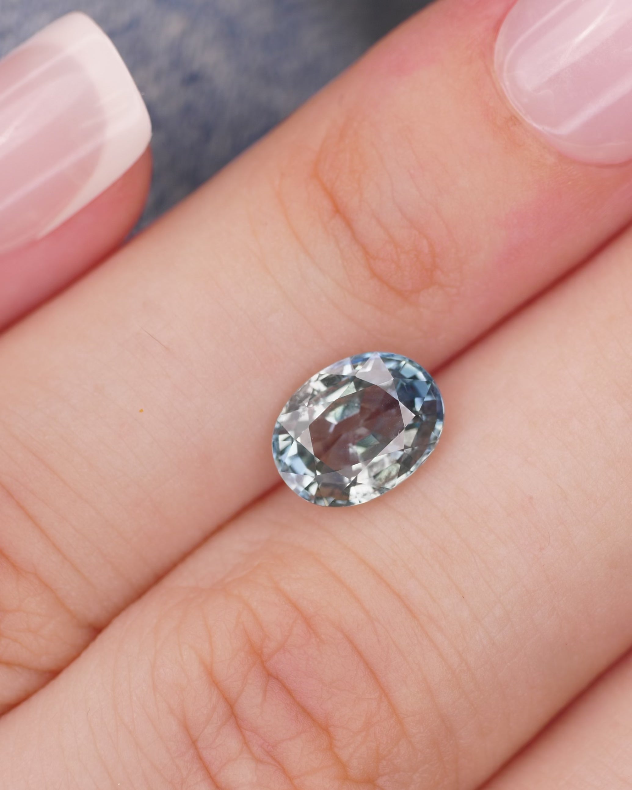 Sapphire | natural, pastel greenish blue color, oval-cut, *8x6mm, 1.8ct