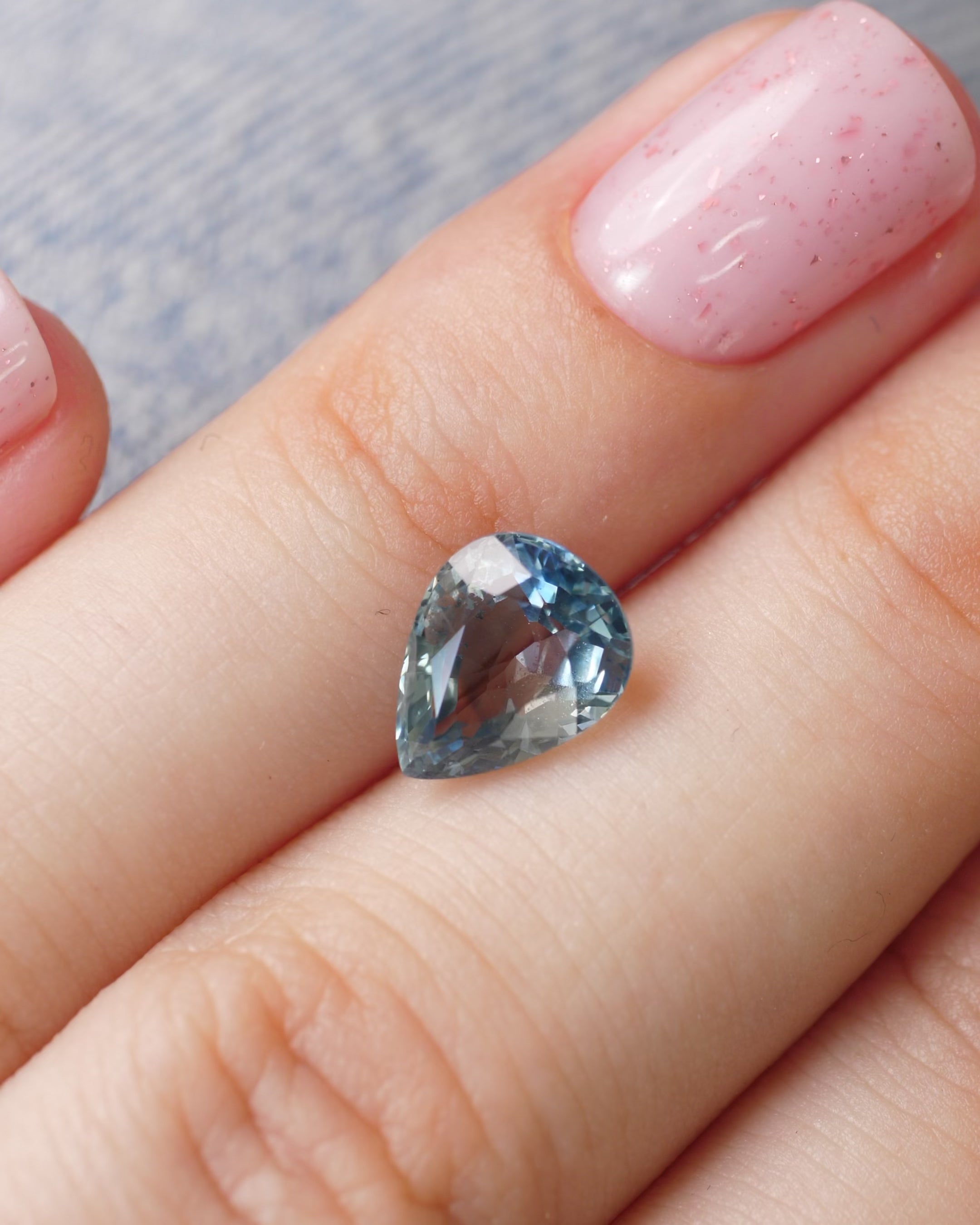 Sapphire | natural, pastel greenish blue color, pear-cut, *9x7mm, 1.8ct