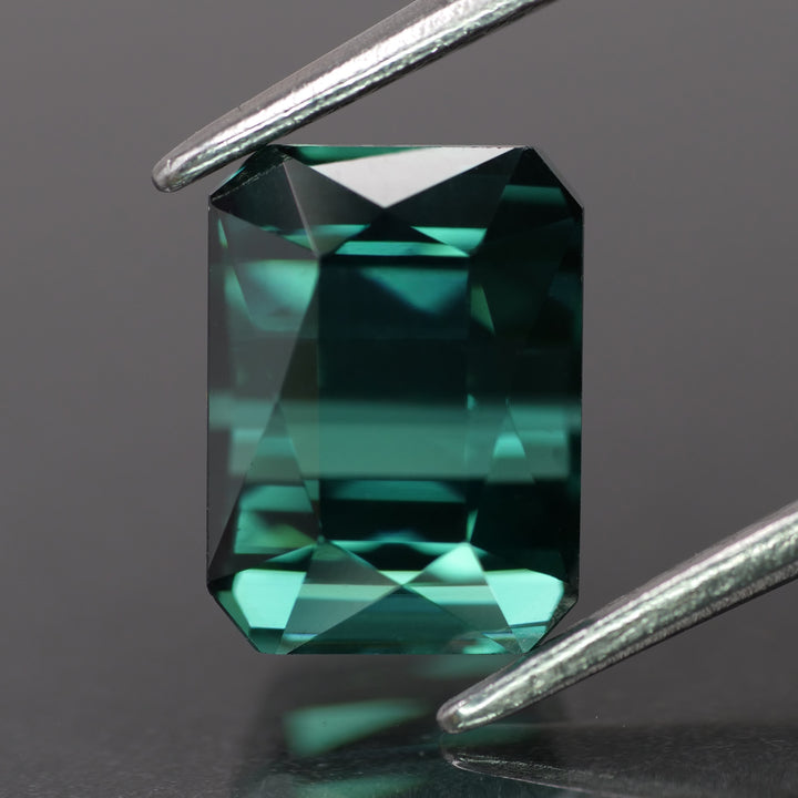 Tourmaline | natural, teal blue color, emerald-cut, 8x6mm, 2.3ct