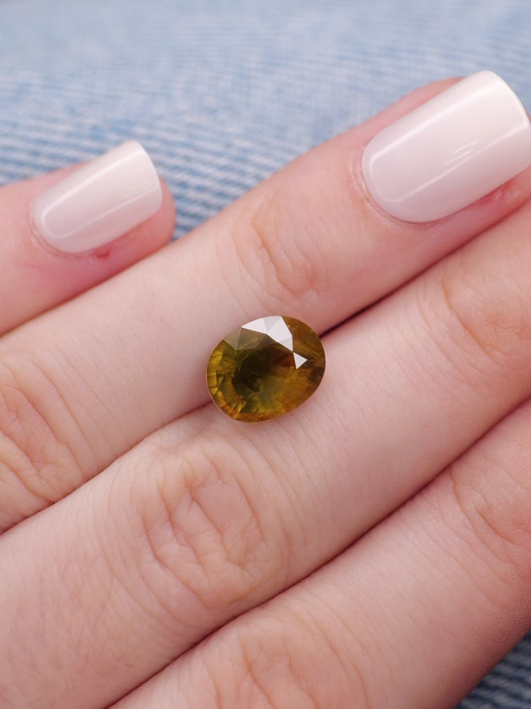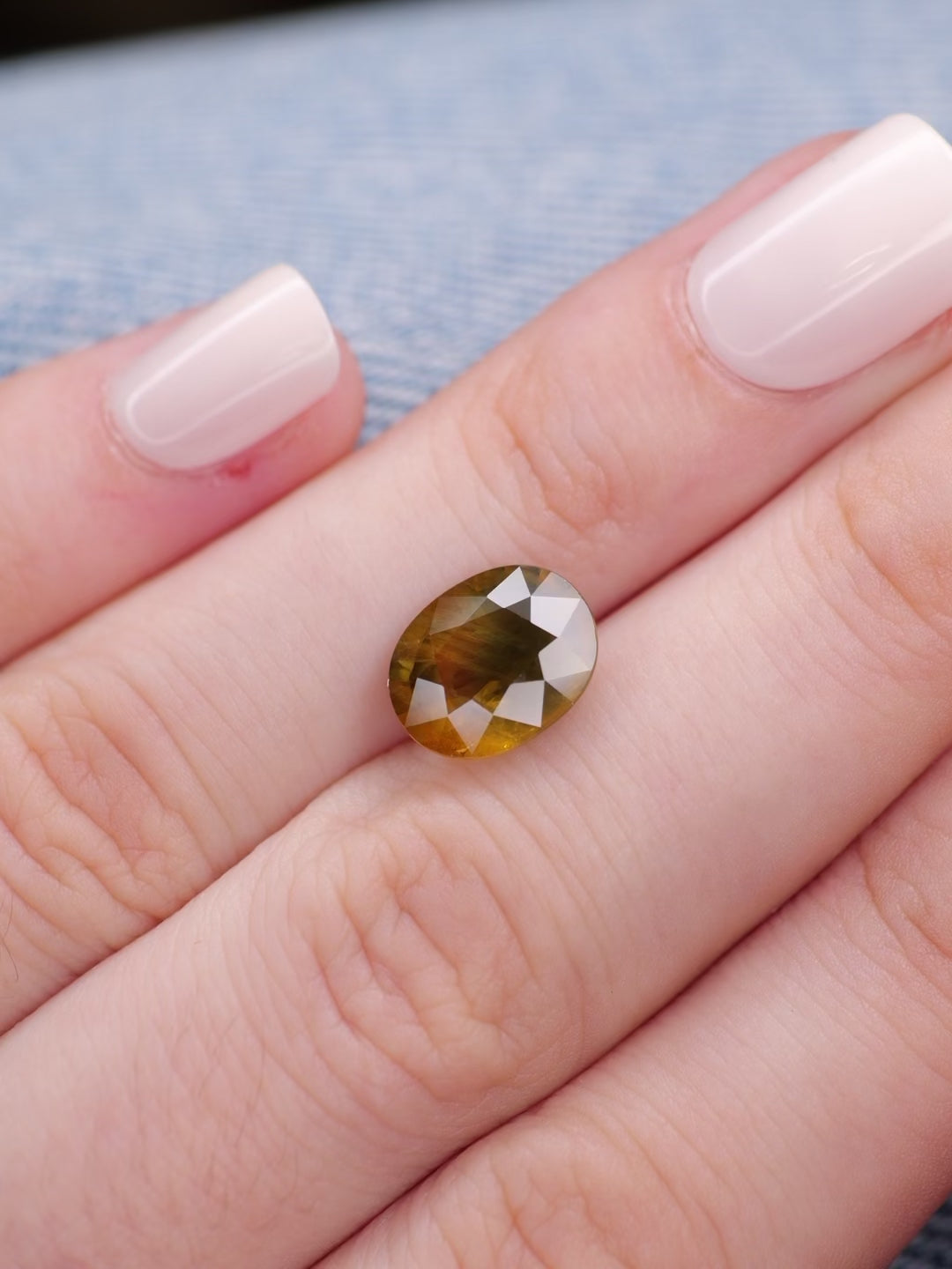 Sapphire | natural, multicolor: yellow, orange & green, oval-cut, 10x8mm, 3.3ct