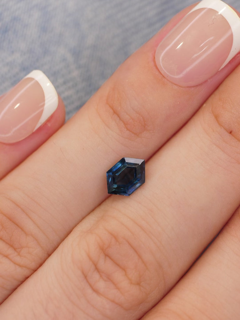Sapphire | natural, blue color, hexagon-cut, 7.5x5mm, 1ct