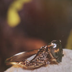 Patricia ring shows intricate design with vines and leaves interlacing in a natural way. Side gemstones are scattered between twigs - marquise cut gemstones are reminding leaf shapes and small round cuts look like shiny morning dew. Central gemstone has a beaded frame around which adds an extra detailing.