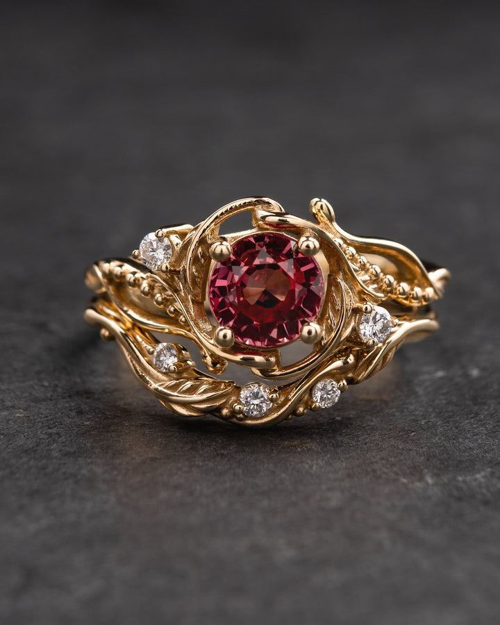 Padparadscha sapphire bridal ring set in a fantasy style / Undina
