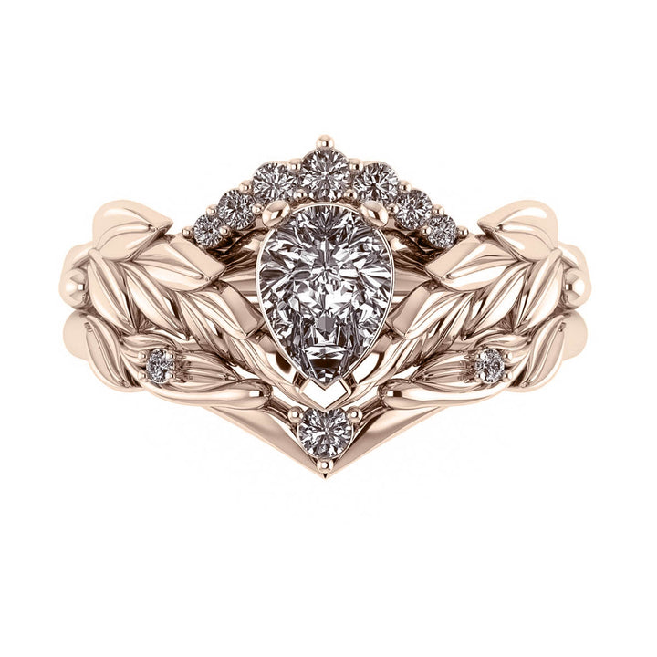 Palmira Crown | custom bridal ring set with pear cut gemstone 7x5 mm - Eden Garden Jewelry™