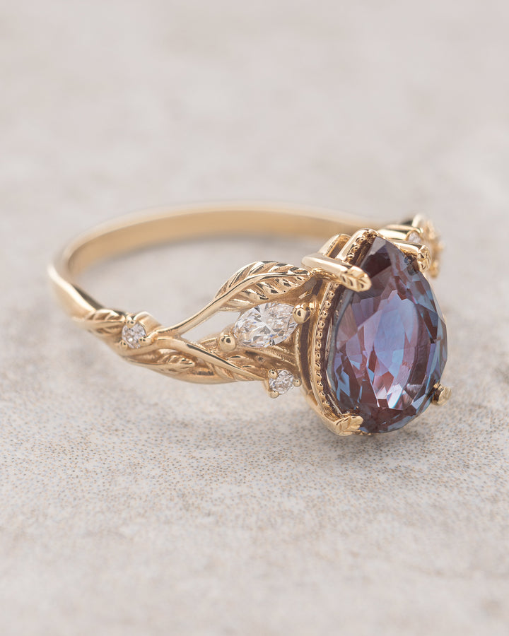 READY TO SHIP: Patricia ring in 14K yellow gold, lab alexandrite pear cut 10x7 mm, accent lab diamonds, AVAILABLE RING SIZES: 5.5 - 8.5 US - Eden Garden Jewelry™