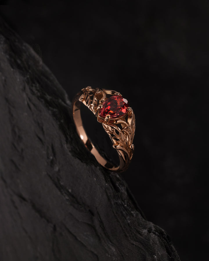READY TO SHIP: Wisteria ring with lab padparadscha sapphire, 14K rose gold, RING SIZES 5.5 - 8.5 US - Eden Garden Jewelry™