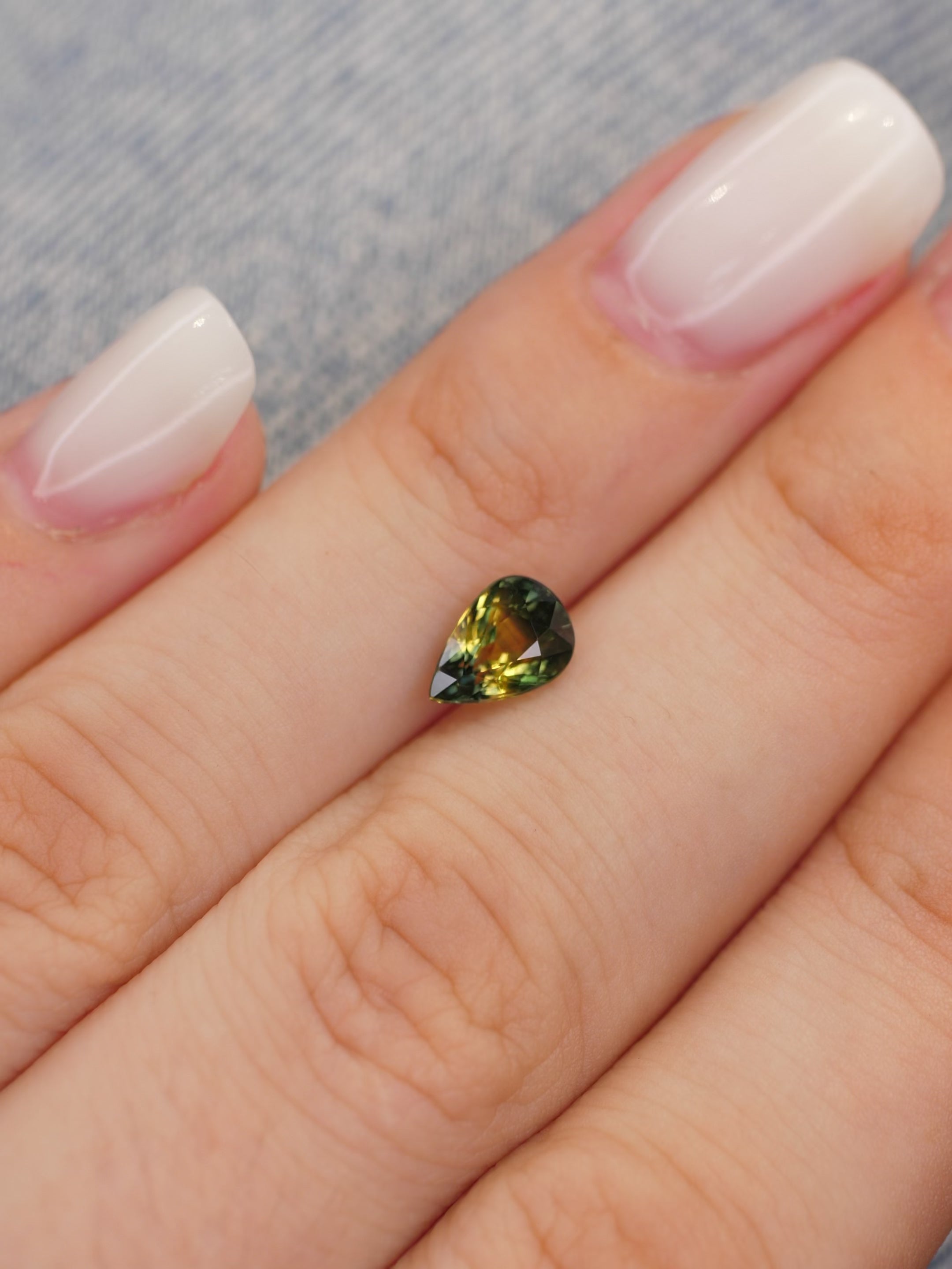 Sapphire | natural, bi-color: yellow & green, pear-cut, *7x5mm, 1ct, Madagascar