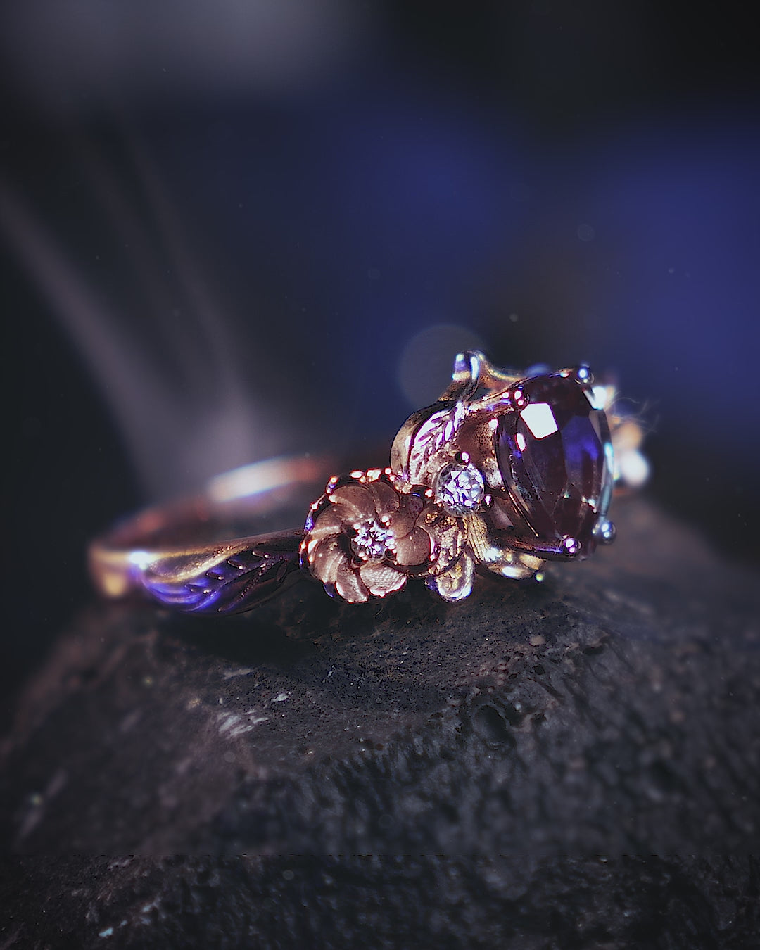 READY TO SHIP: Adelina floral engagement ring with alexandrite, 14K rose gold, RING SIZES: 5.5 - 8 US - Eden Garden Jewelry™