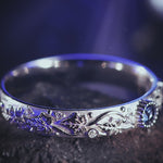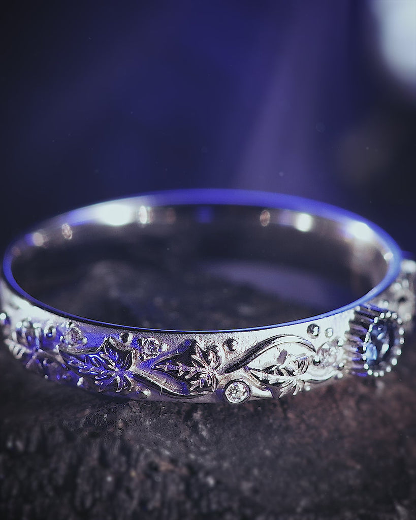 Blue sapphire wedding band, ivy leaf ring with diamonds, comfort fit ring - Eden Garden Jewelry™