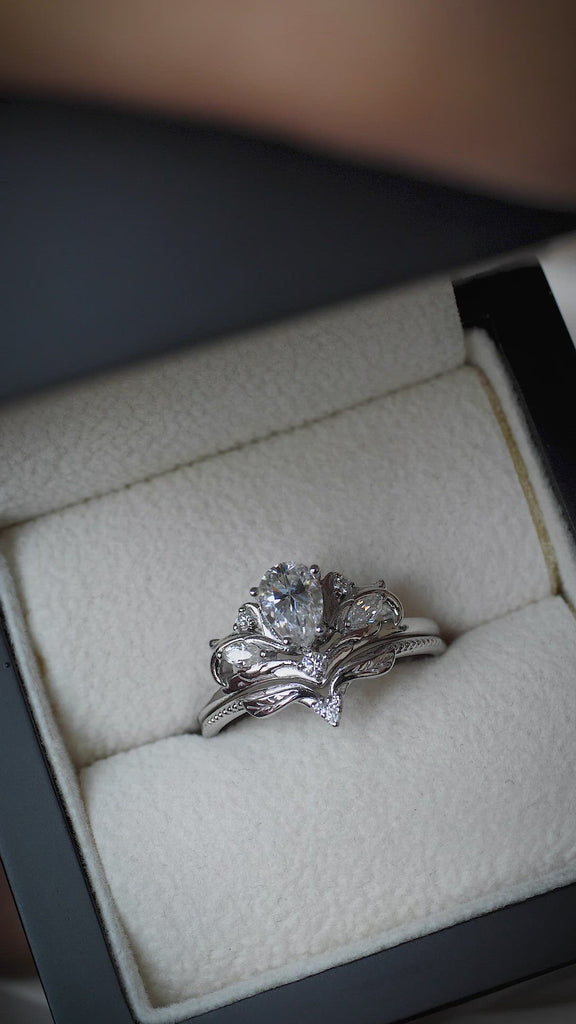 Bridal ring set with pear cut sapphire / Swanlake - Eden Garden Jewelry™