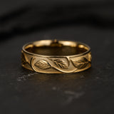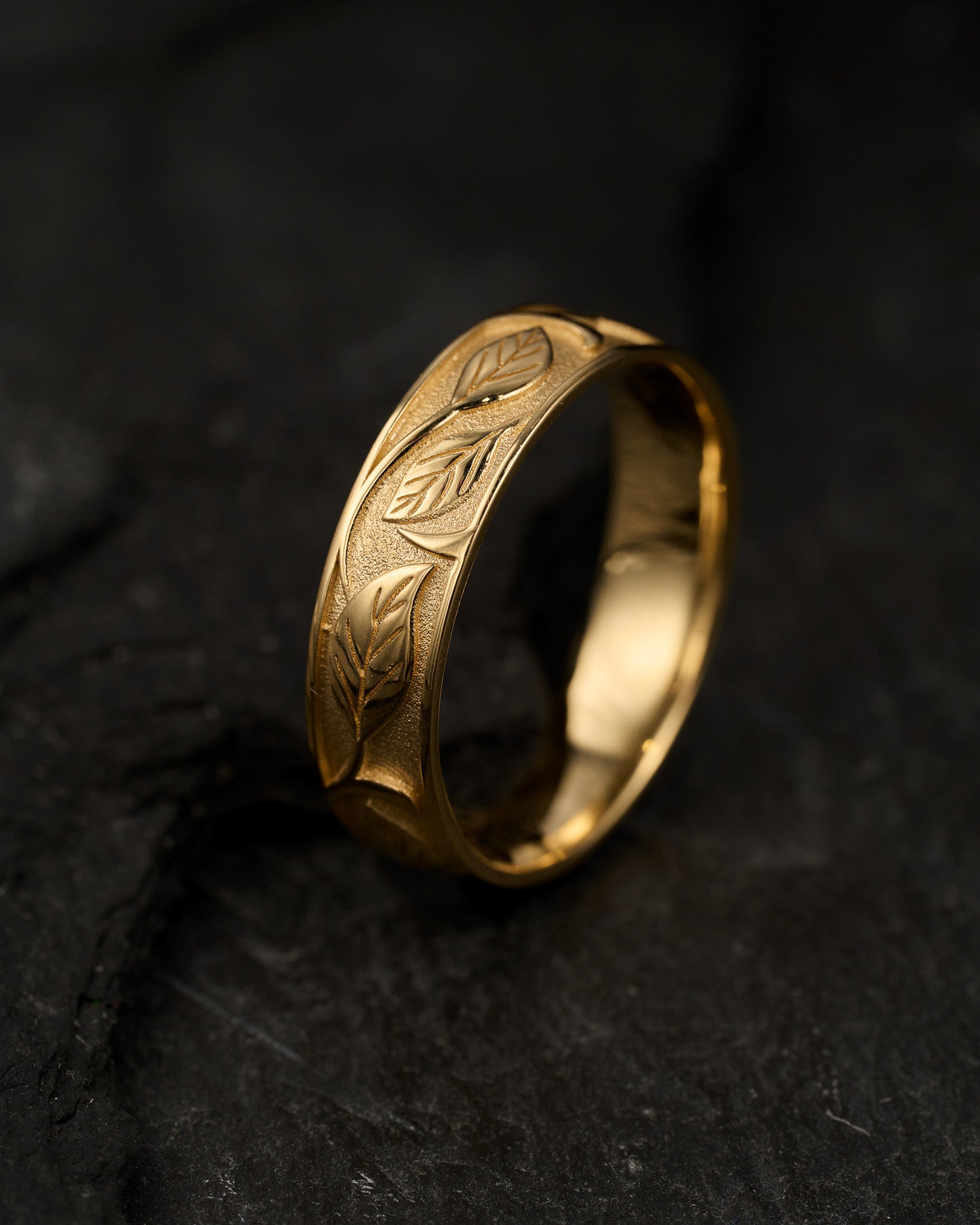 Leaf wedding band for men, 6 mm wide gold band - Eden Garden Jewelry™