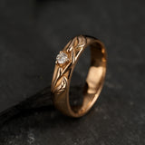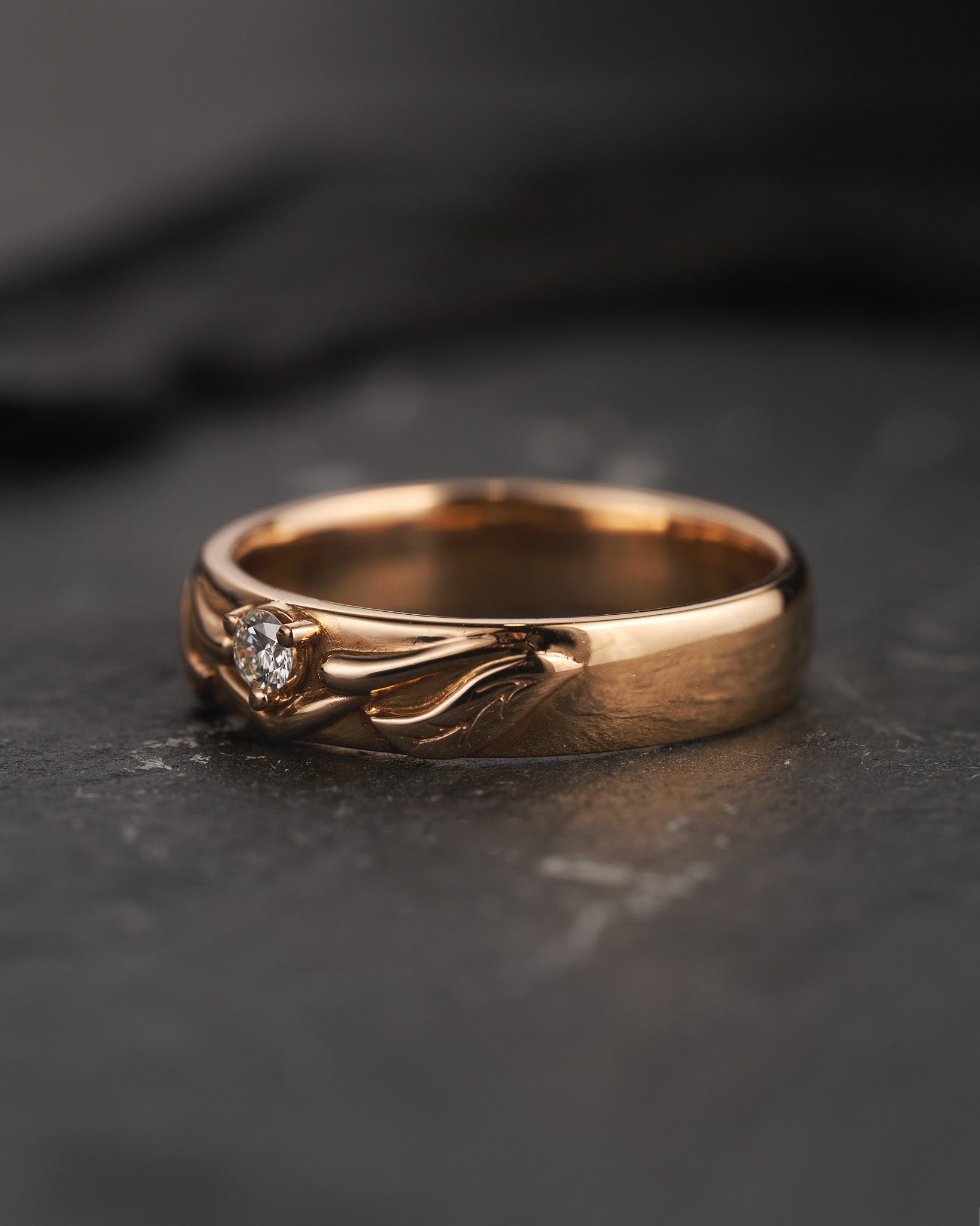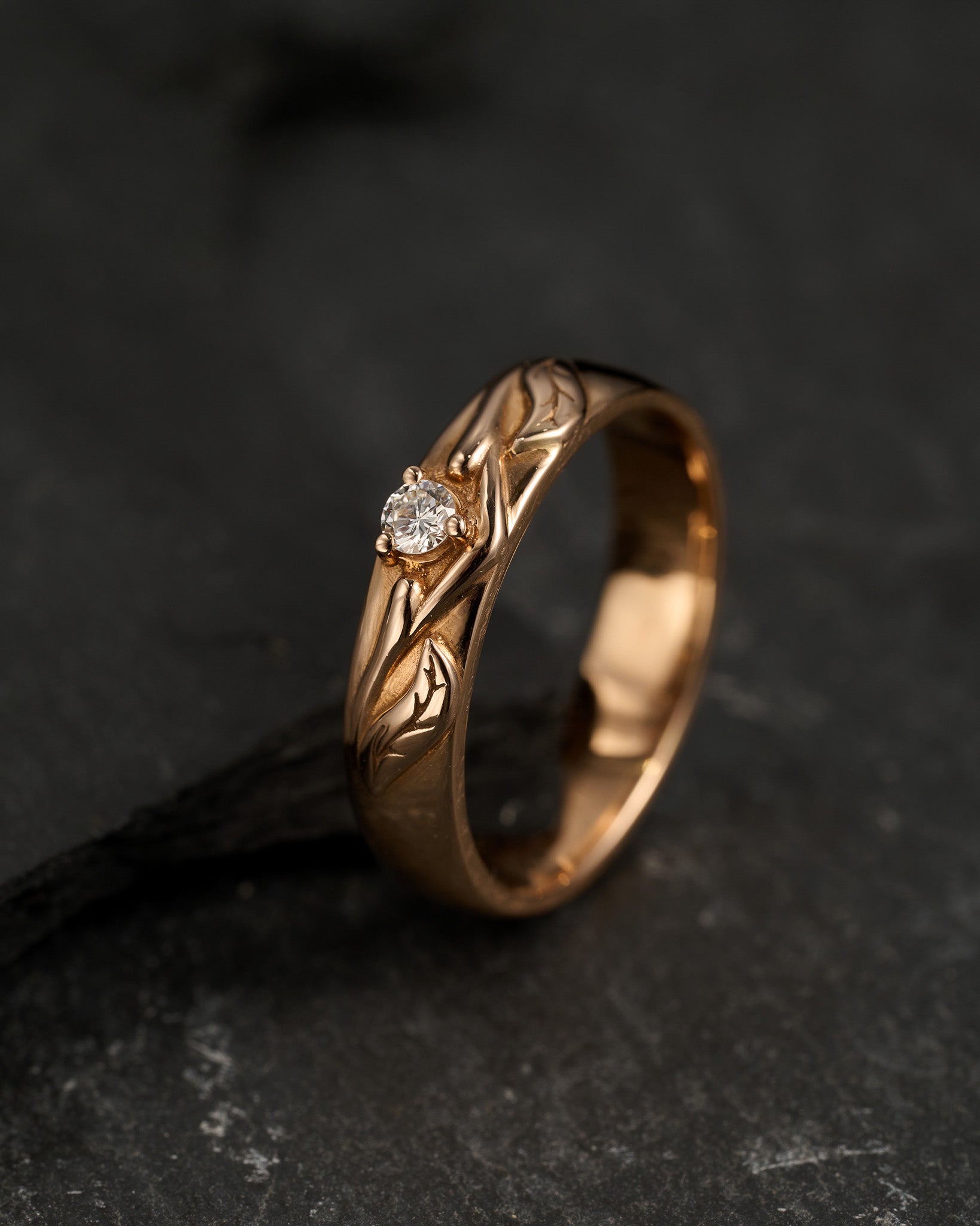 Nature themed wedding ring is comfortable for everyday wear. Will be made in requested size and desirable gold colour.