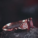 READY TO SHIP: Gloria ring in 14K rose gold, natural garnet emerald-cut 8x6 mm, accent lab diamonds, AVAILABLE RING SIZES: 5.5 - 8.5 US