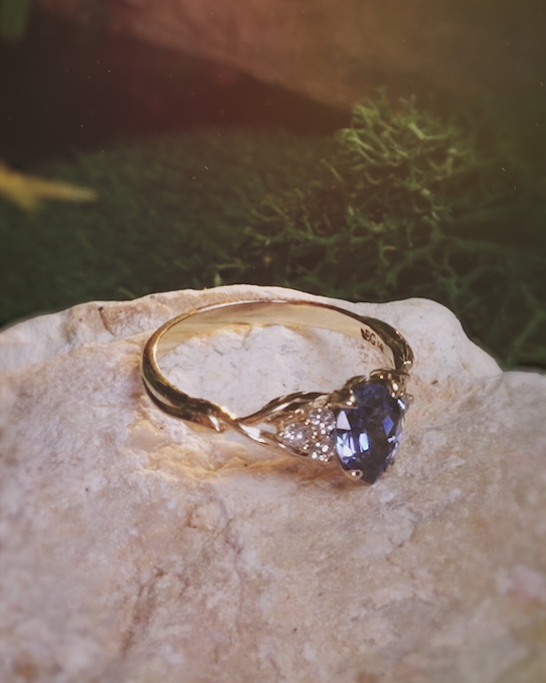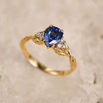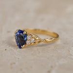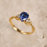 READY TO SHIP: Gloria ring in 14K yellow gold, 8x6 mm lab sapphire & accent diamonds, AVAILABLE RING SIZES: 5.5 - 8.5 - Eden Garden Jewelry™