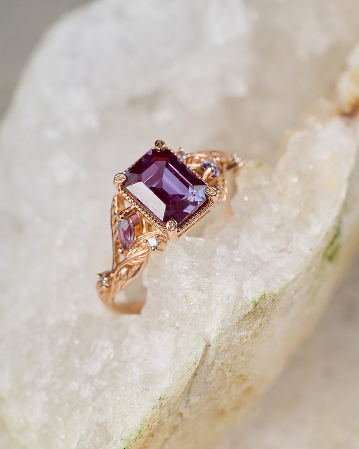 Alexandrite engagement ring with salt and pepper diamonds / Patricia - Eden Garden Jewelry™