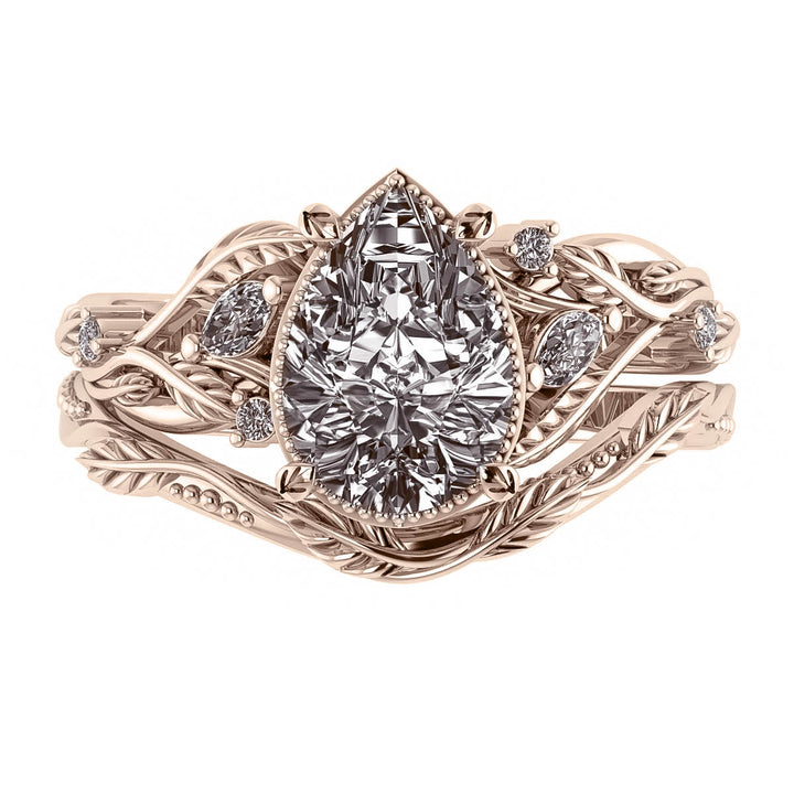 Patricia asymmetric | custom bridal ring set with pear cut gemstone 10x7 mm - Eden Garden Jewelry™