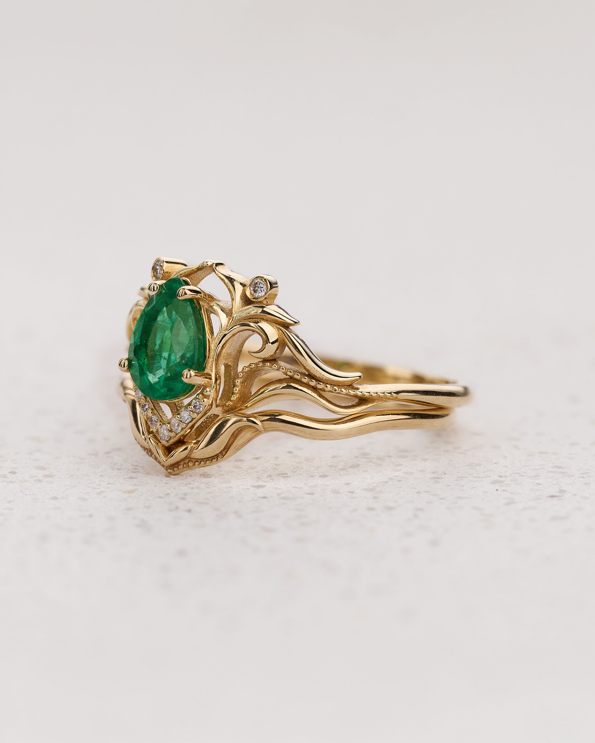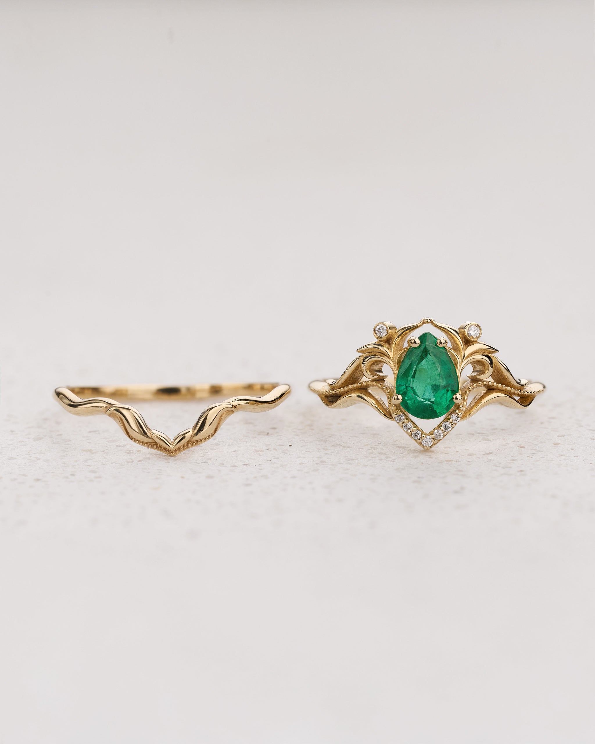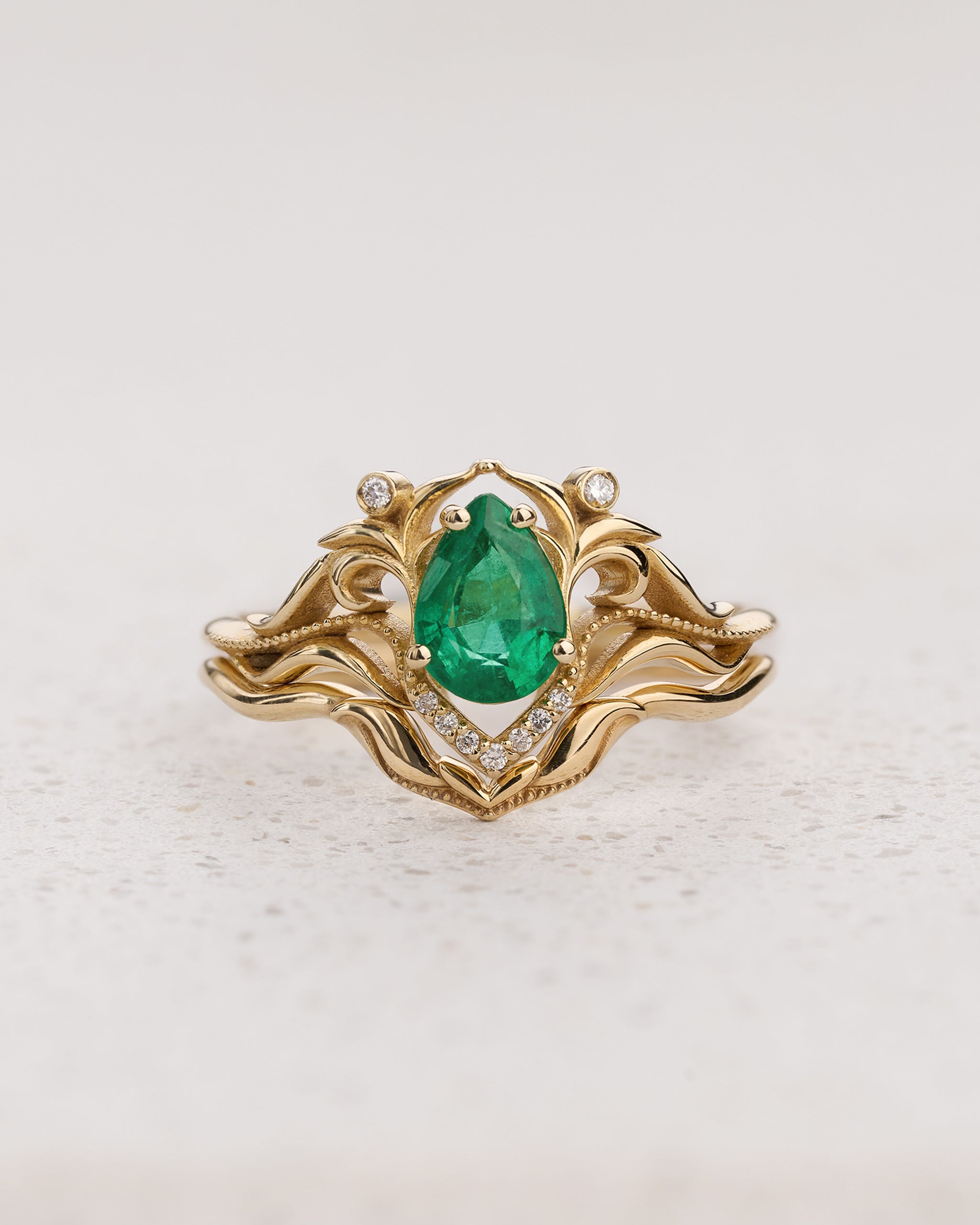 Vintage-inspired Bridal Set with Natural Emerald Engagement Ring / Lida small