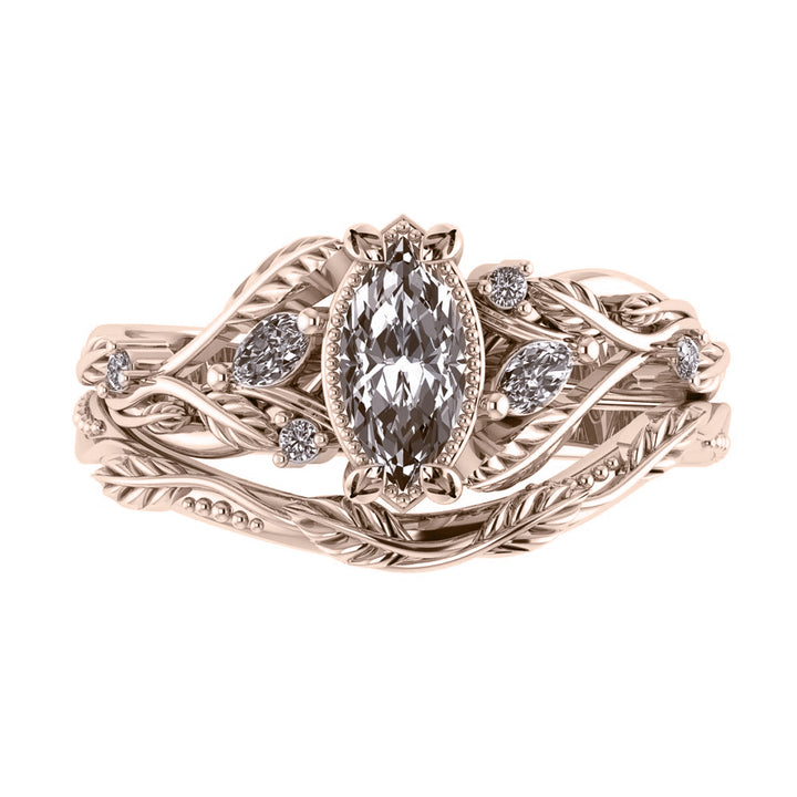 Patricia asymmetric | custom bridal ring set for marquise cut gemstone 8x4 mm - Eden Garden Jewelry™