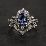 READY TO SHIP: Sophie bridal set in 14K white gold, natural blue sapphire, oval cut 8x6 mm, accent lab diamonds, AVAILABLE RING SIZES: 5.5 - 8.5 US - Eden Garden Jewelry™