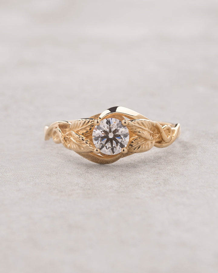 Golden leaf engagement ring with lab grown diamond / Azalea