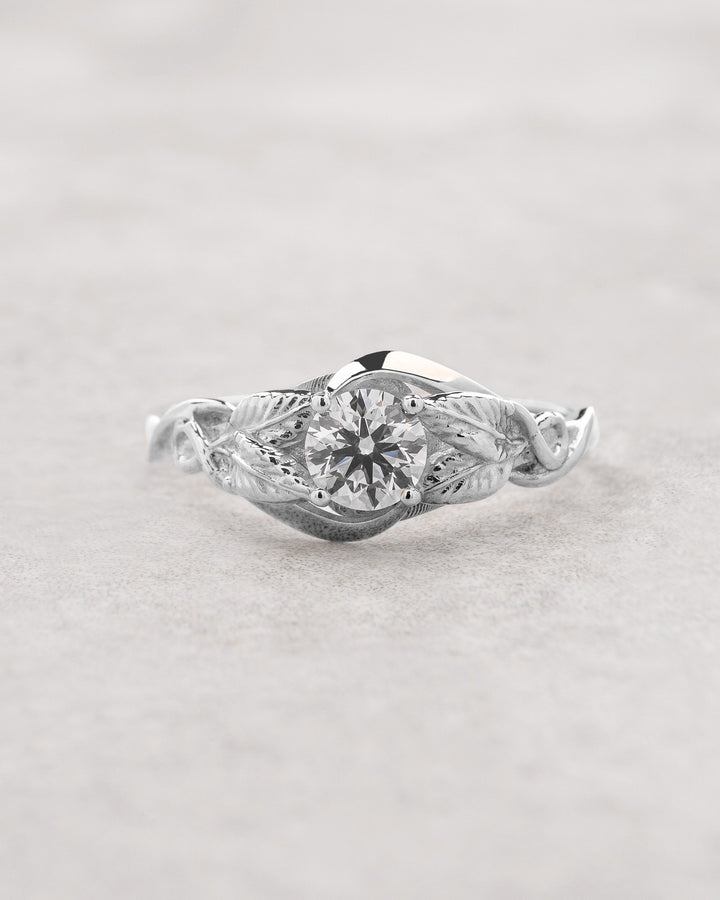 READY TO SHIP: Azalea engagement ring in 14K or 18K white gold, lab grown diamond, round cut 5 mm, AVAILABLE RING SIZE: 5.5 - 8.5 US - Eden Garden Jewelry™