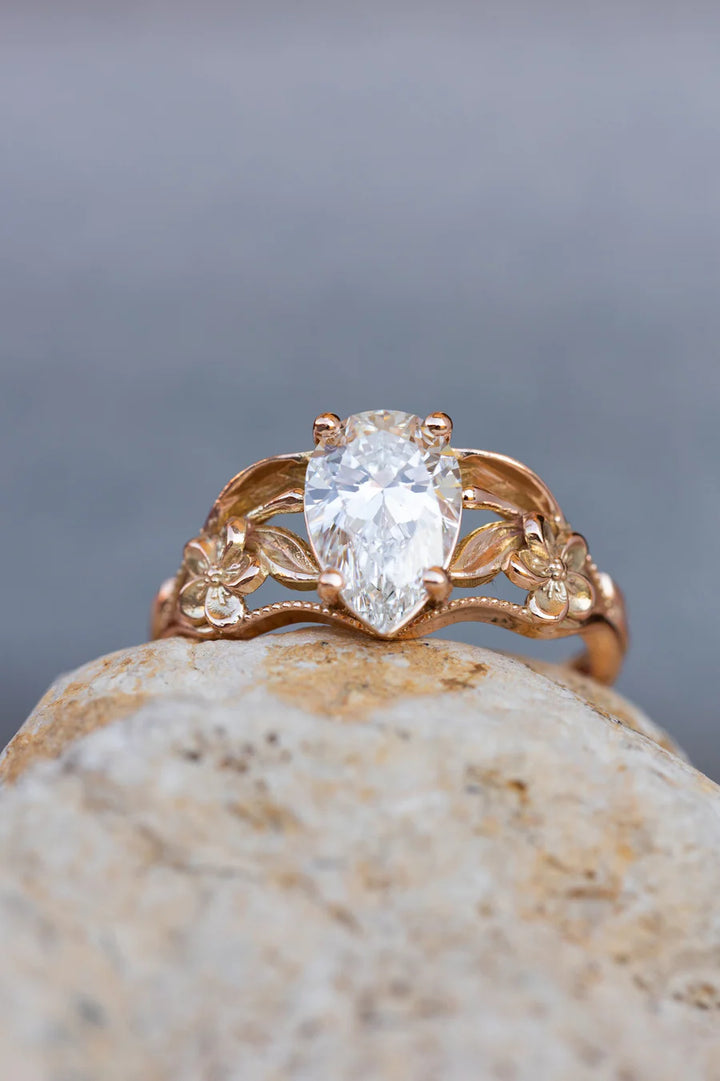 READY TO SHIP: Eloise engagement ring in 14K rose gold, big lab grown diamond, 10x7 mm, AVAILABLE RING SIZES: 5.25 - 8.25 US