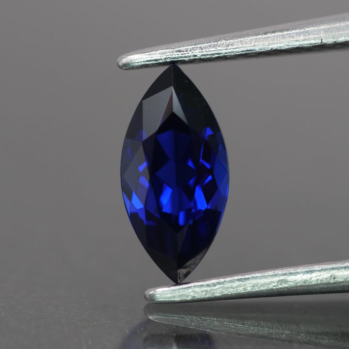 Sapphire | Royal Blue color, lab-grown, marquise-cut, 8x4mm, 0.8ct