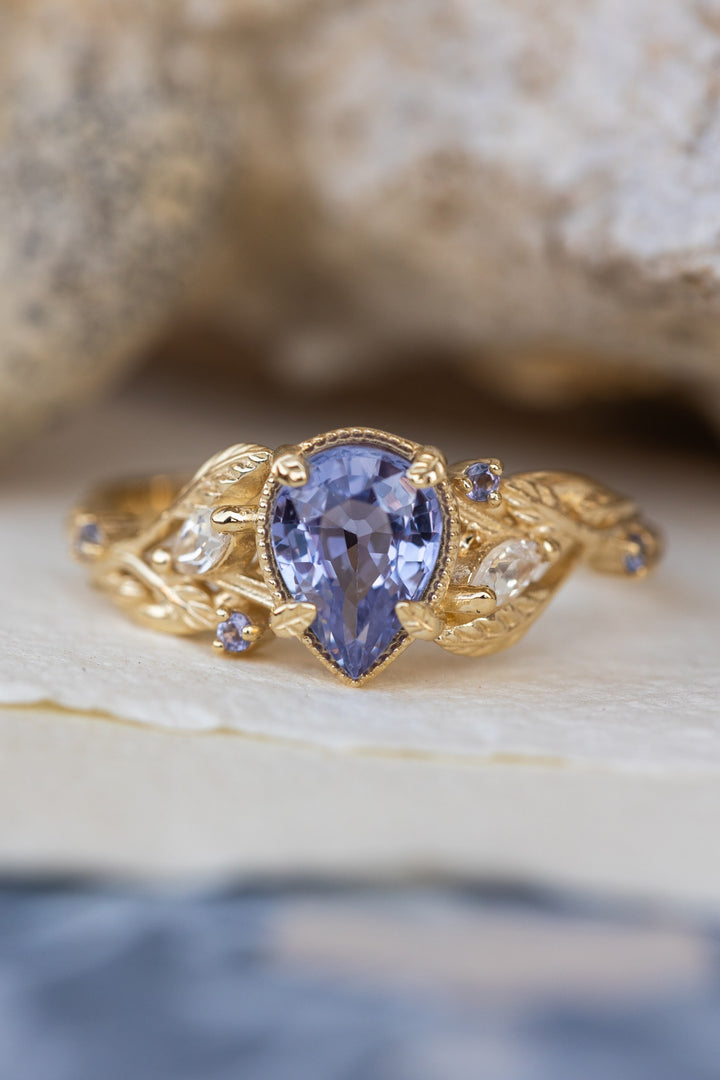 Natural purple sapphire engagement ring with accents moonstones and tanzanites / Patricia