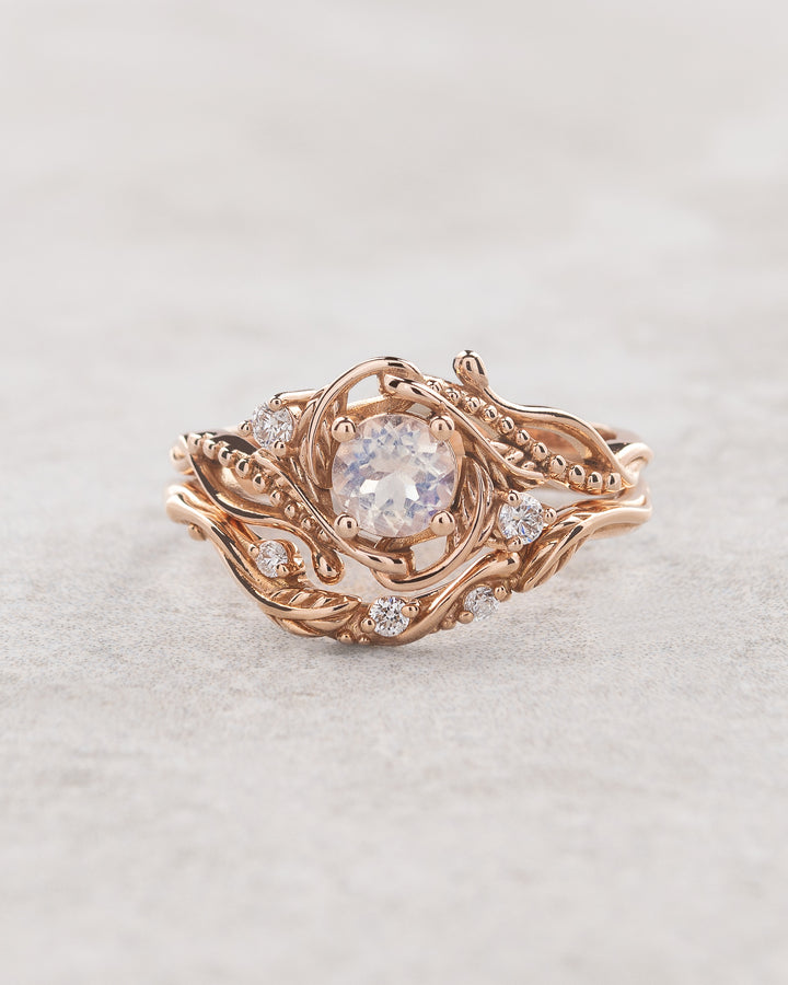 Rainbow moonstone bridal ring set / Undina - Eden Garden Jewelry™