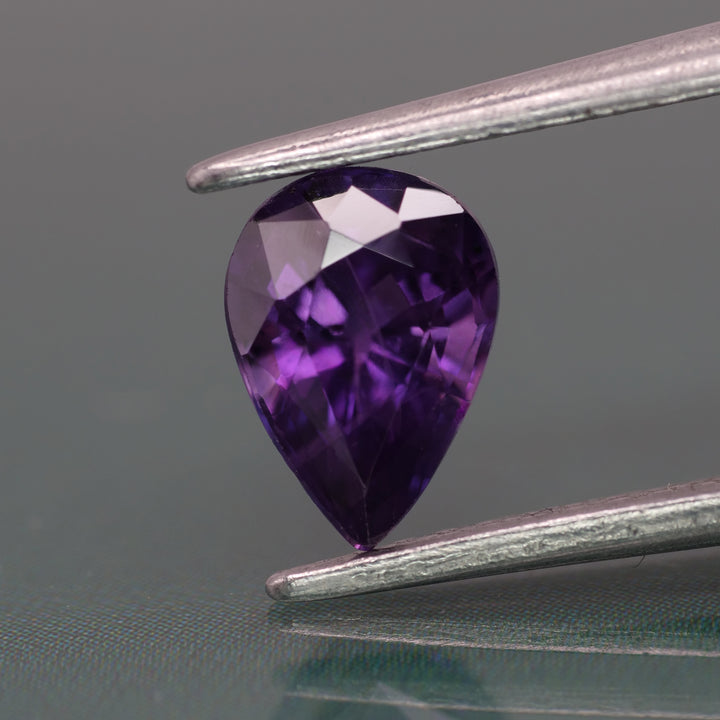 Sapphire | natural, deep purple color, pear-cut, 7x5mm, 0.9ct