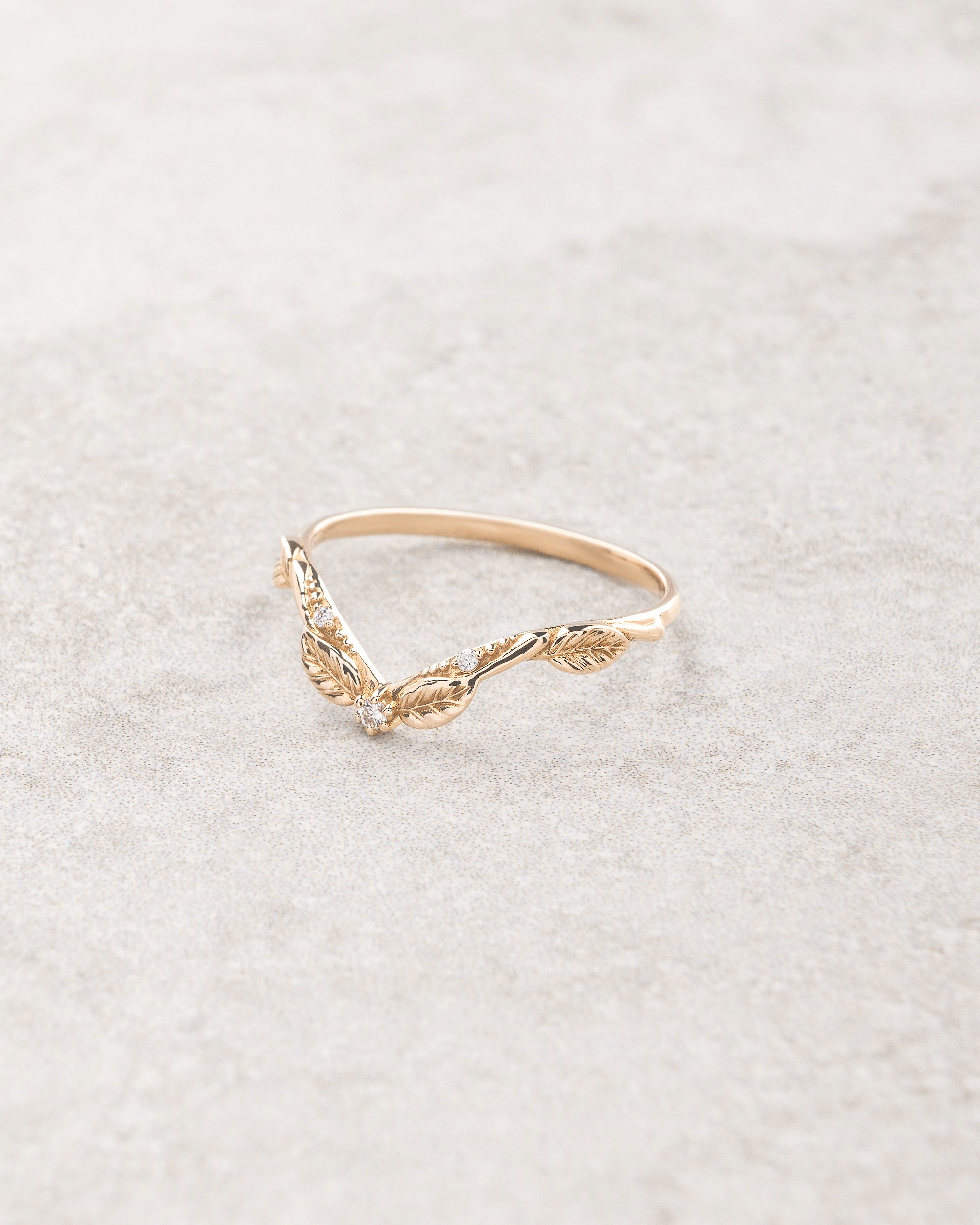 A beautiful and meticulously crafted gold ring is complemented by a matching wedding band. There's no need to look around for the perfect wedding band when the special day arrives.