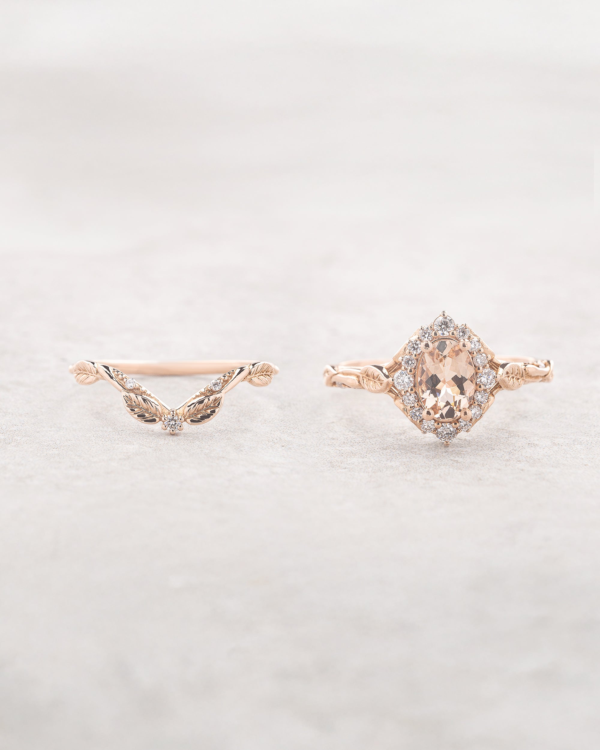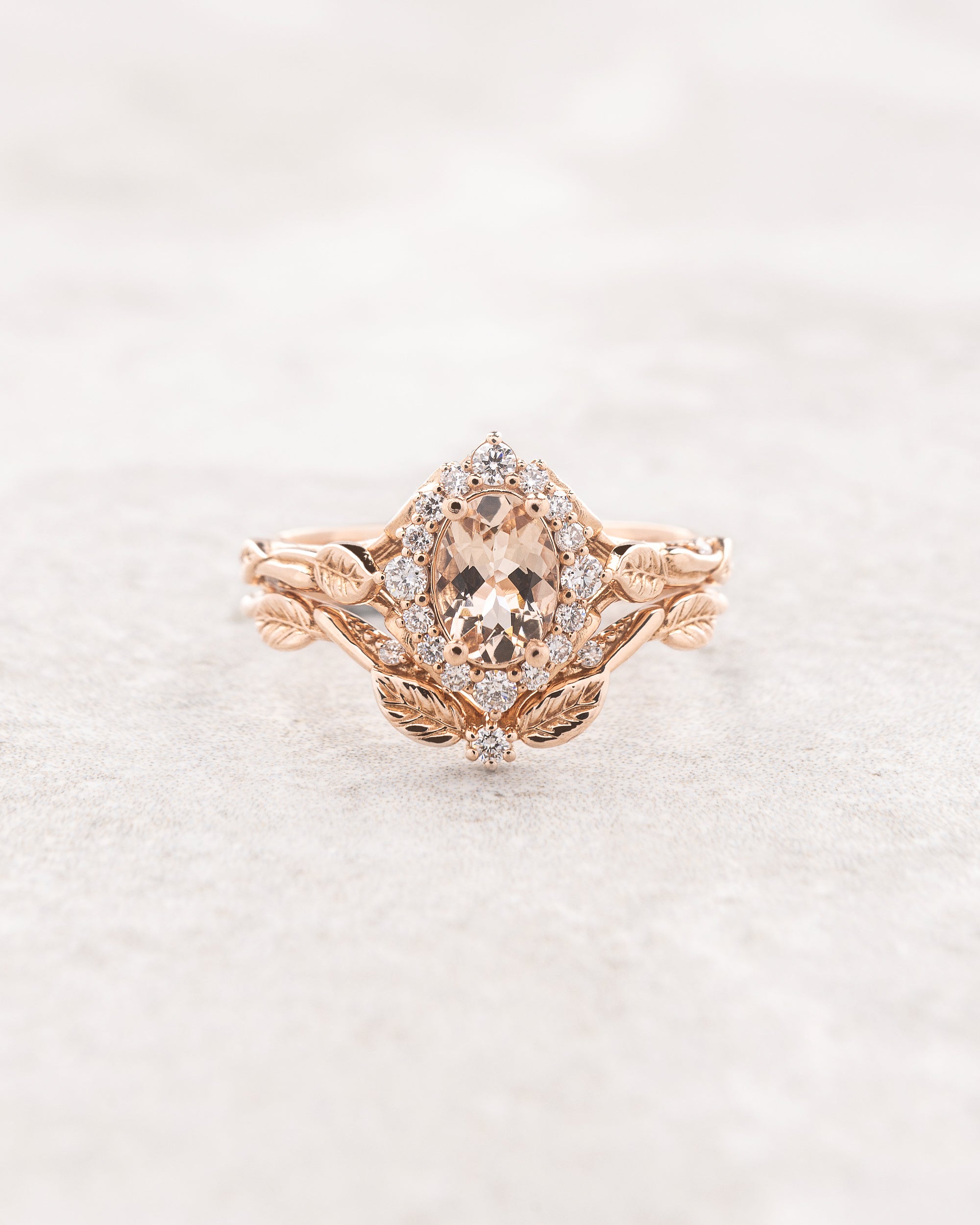 Florentina | custom bridal ring set with oval cut gemstone 7x5 mm - Eden Garden Jewelry™