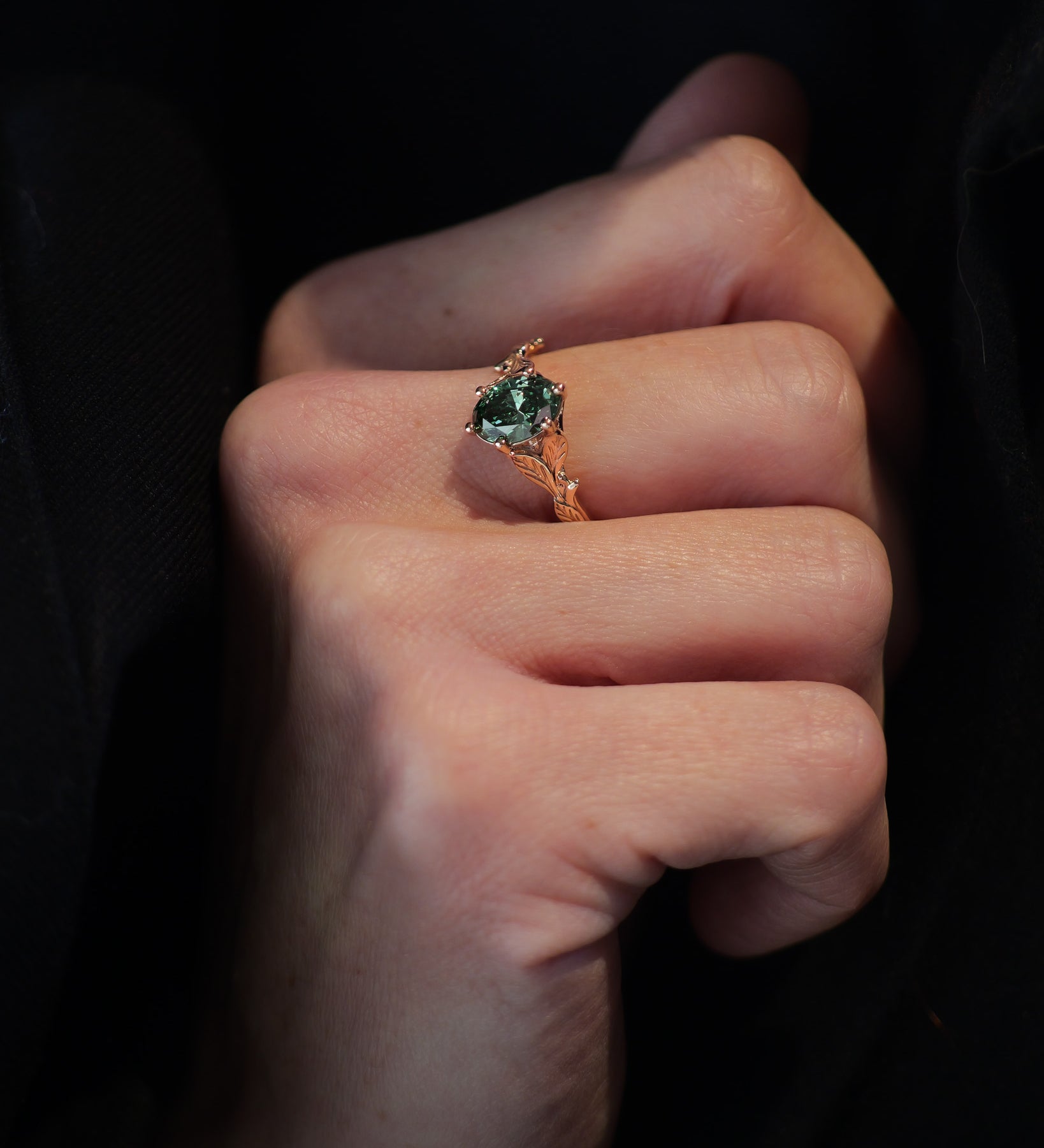 READY TO SHIP: Freesia ring with green lab-grown diamond, 14K rose gold, AVAILABLE RING SIZES: 5.5 - 8.5 US
