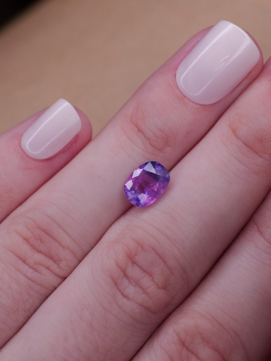 Opalescent sapphire | natural, pinkish purple color, cushion-cut, 8x6mm, 1.7ct