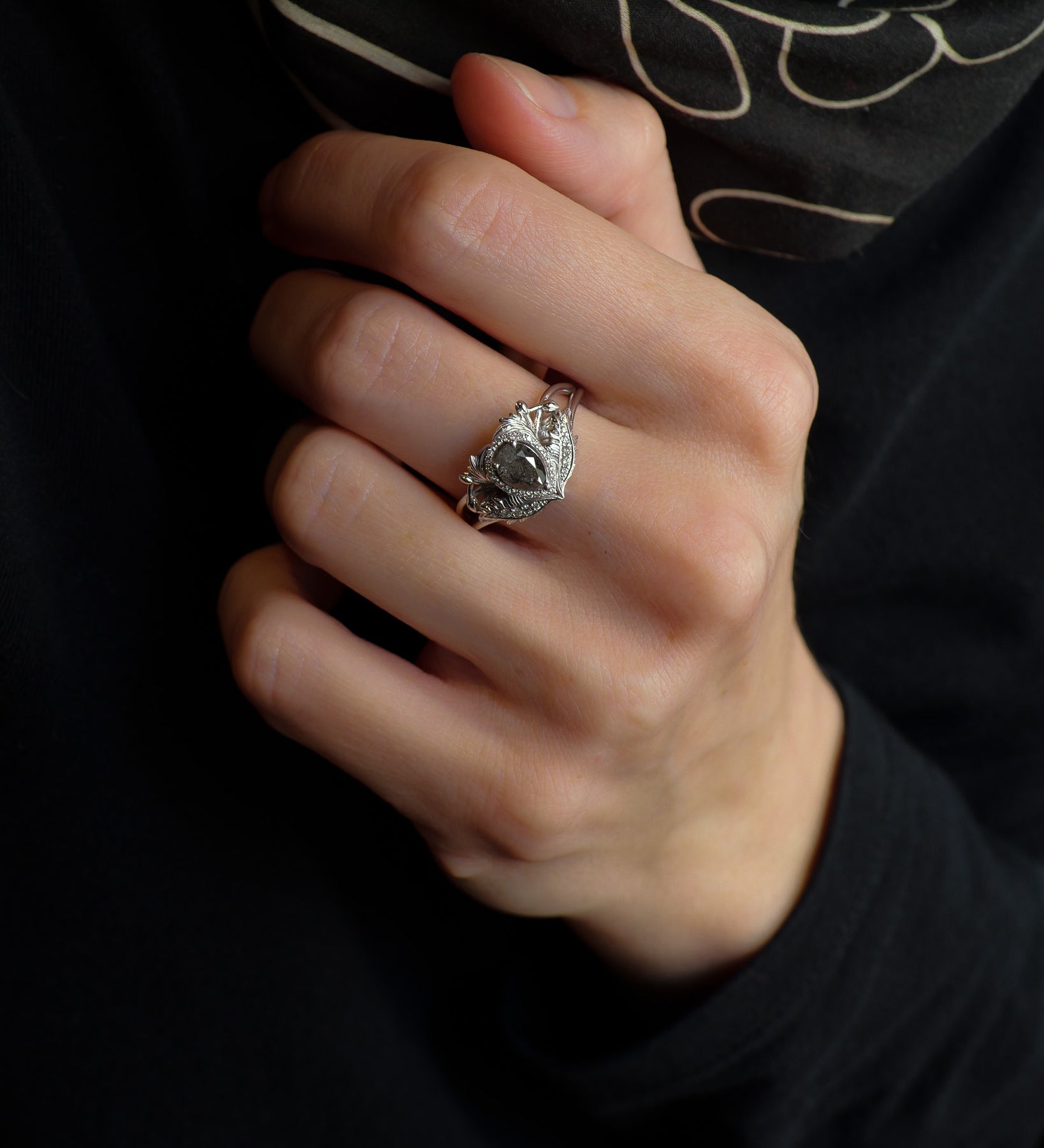 We collect pristine fallen stars and watch as they solidify, transforming into various mesmerizing shapes. It is with these stars, that we create our ethereal diamond rings, letting your inner-light shine bright.