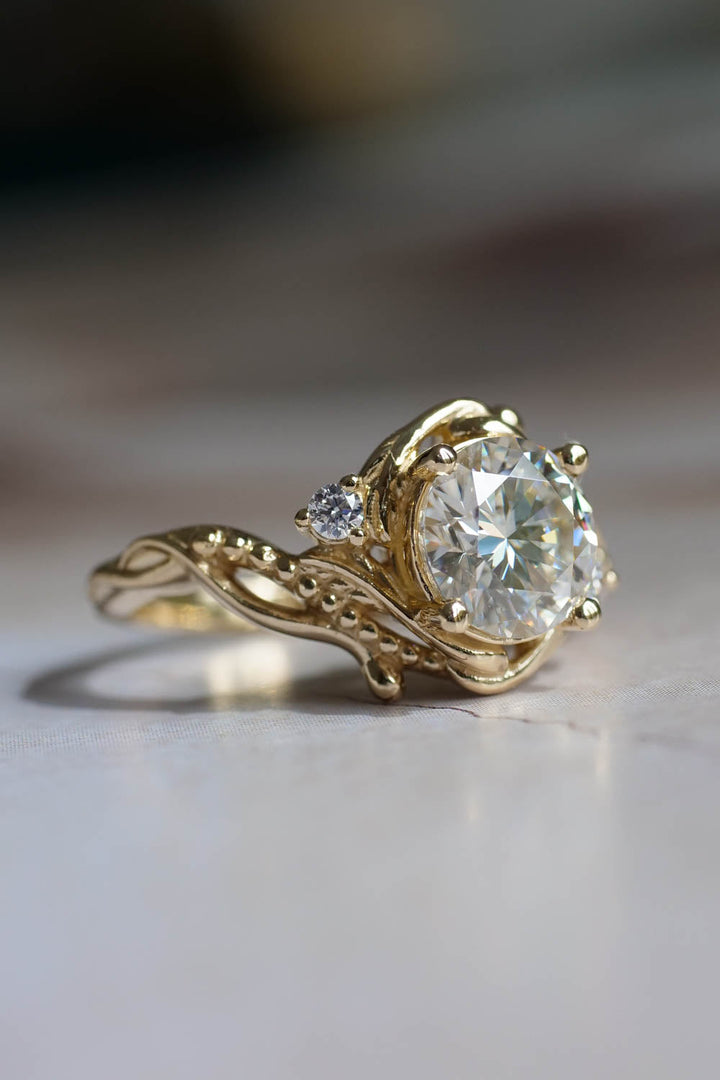 1.7 ct lab grown diamond engagement ring, round cut gemstone gold ring / Undina