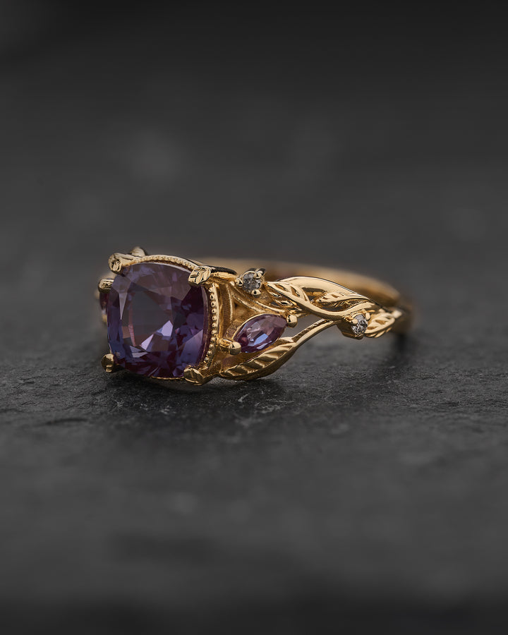 READY TO SHIP: Patricia ring with alexandrite and accent alexandrites and salt & pepper diamonds, 14K yellow gold, AVAILABLE RING SIZES: 5.5 - 8.5 US