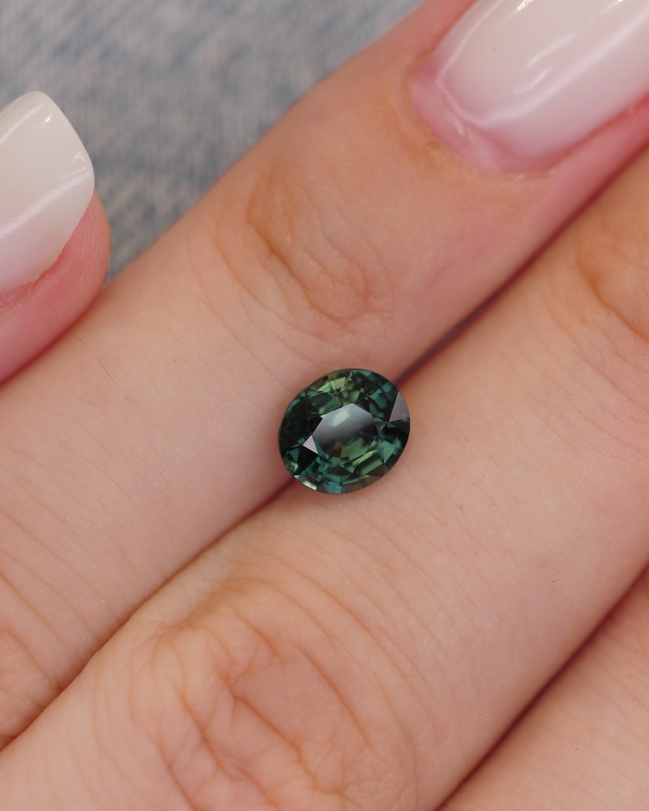 Sapphire | natural, teal color, oval-cut, *6.5x5.5mm, 1.1ct