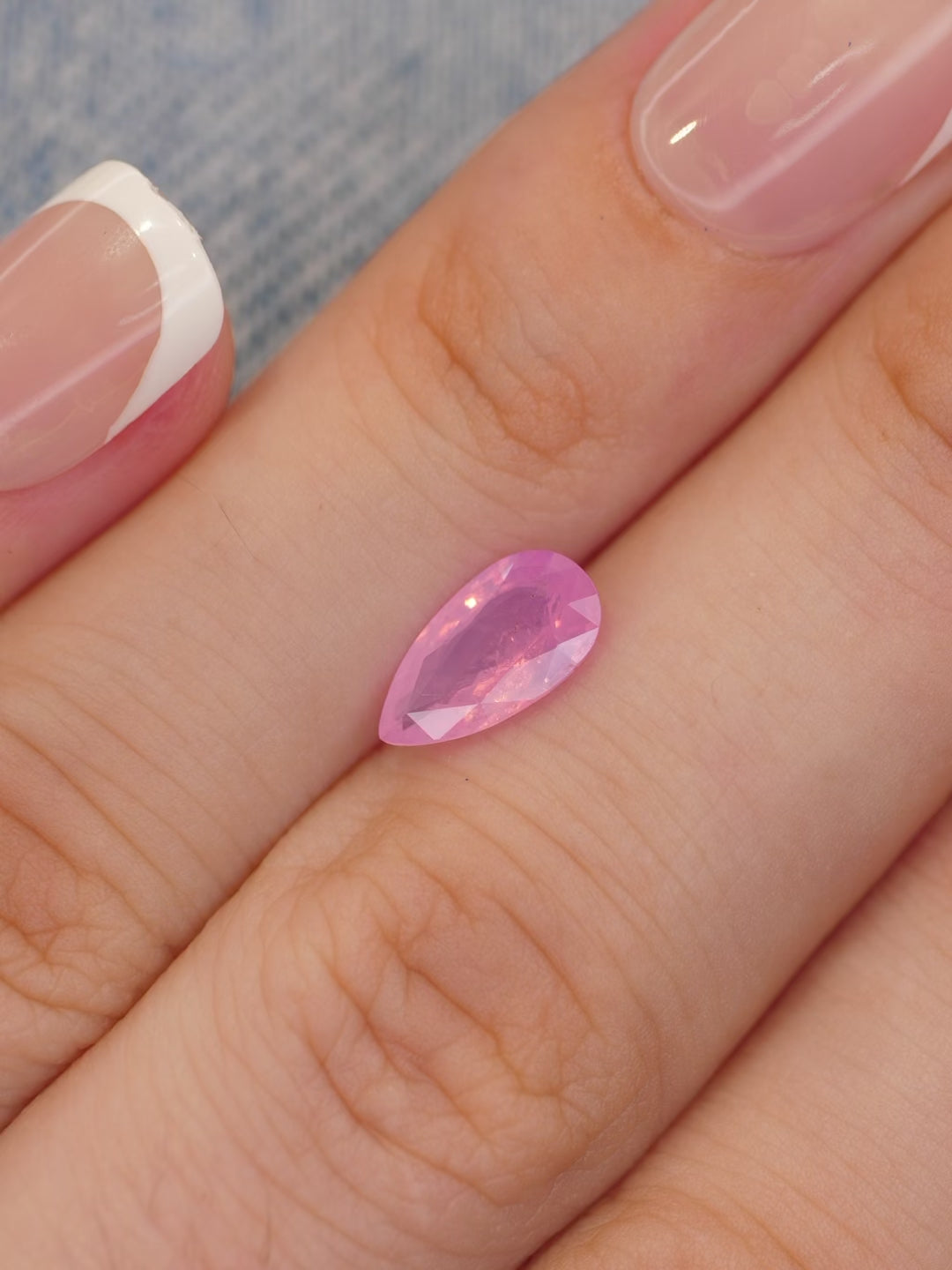 Opalescent sapphire | natural, pink color, pear-cut, *9x5mm, 1.1ct